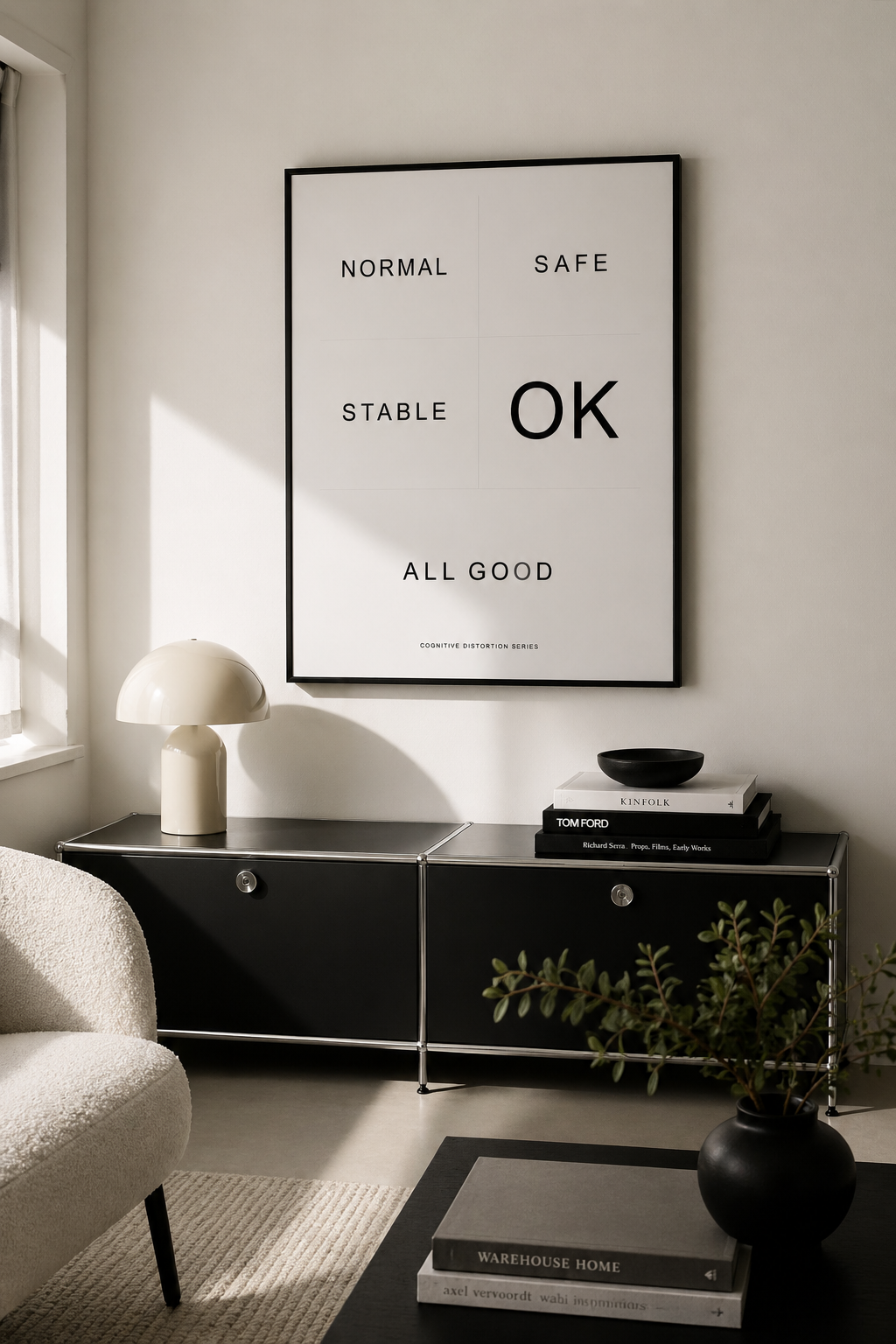 A minimalist typography art collection exploring perception, cognitive distortion, and visual imbalance.