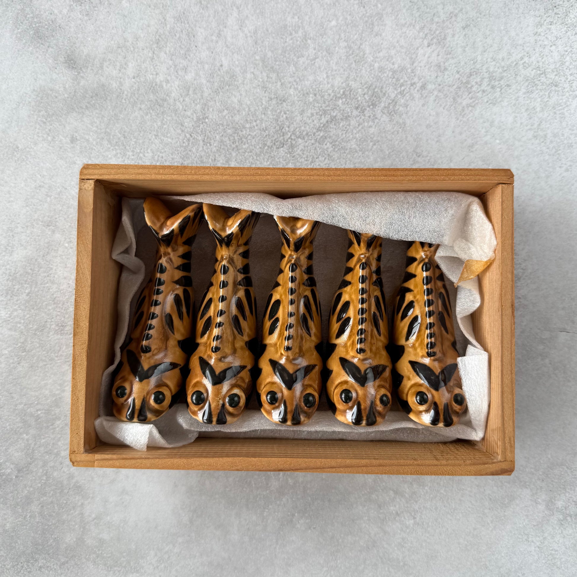 Mudskipper Chopstick Rests – Nabeshima Ware by Aoyama | Set of 5 with Wooden Box